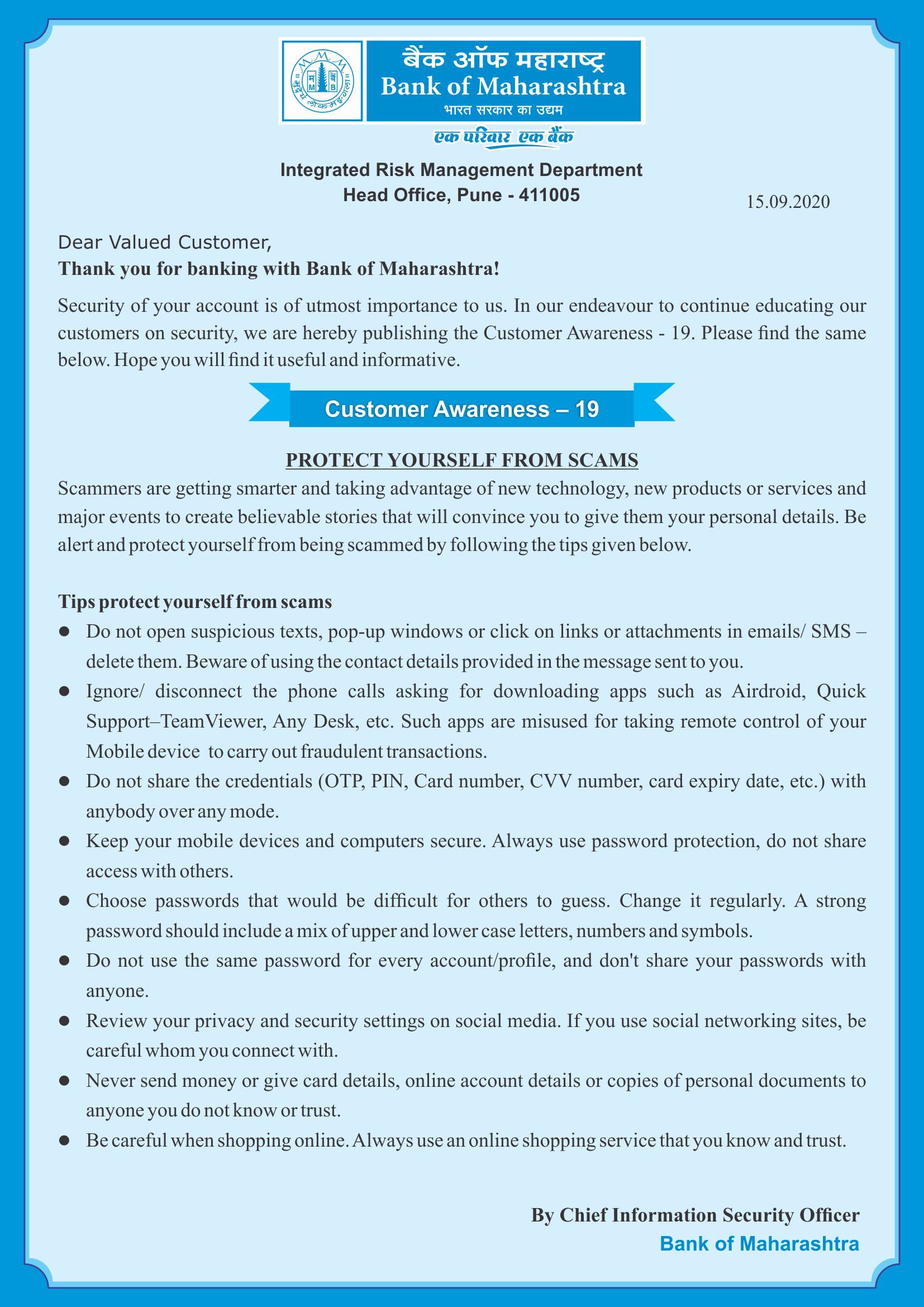 - Customer Awareness Series - 19 (Protect yourself from Scams)
