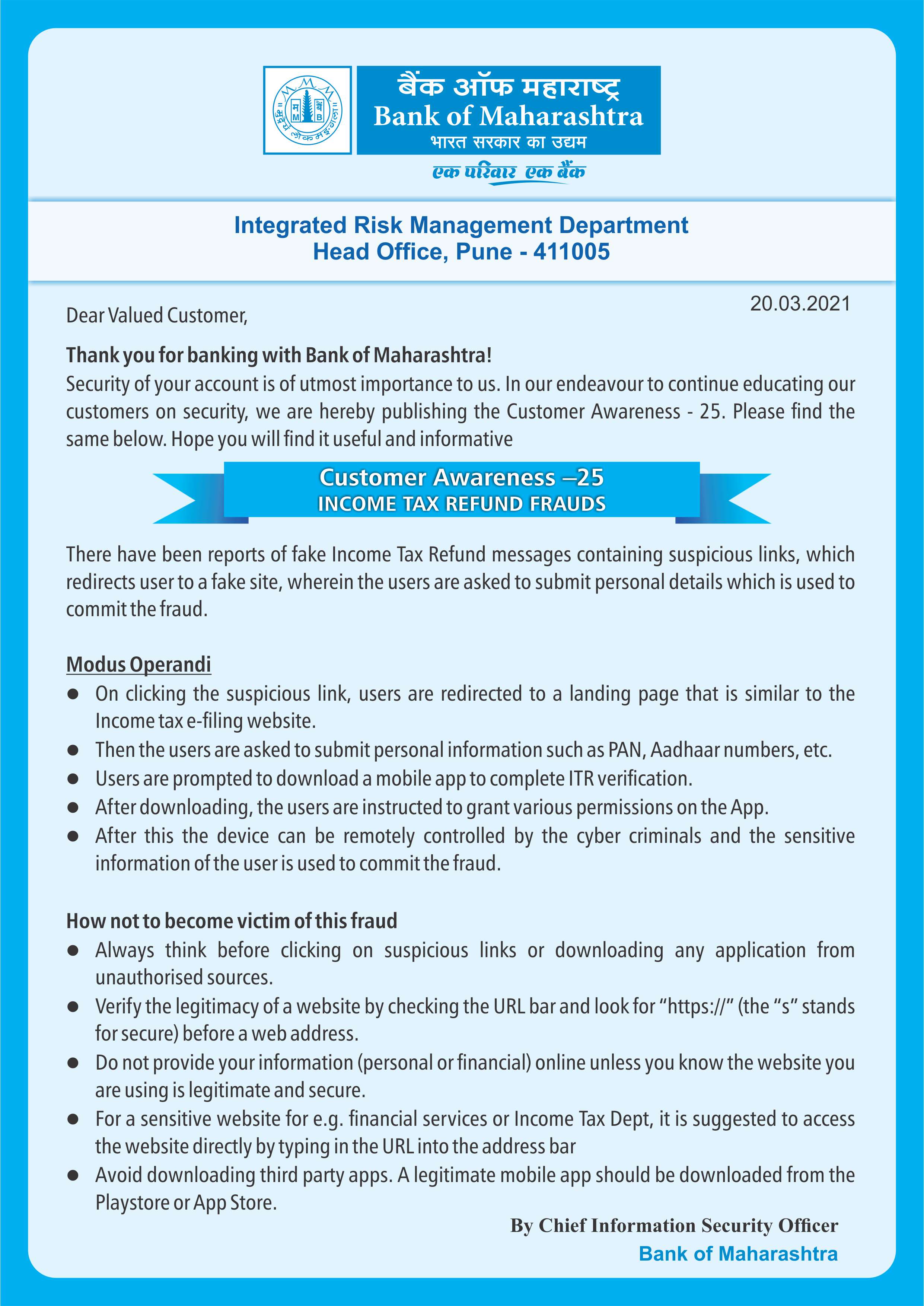 - Customer Awareness Series - 25 (Income Tax Refunds Frauds)